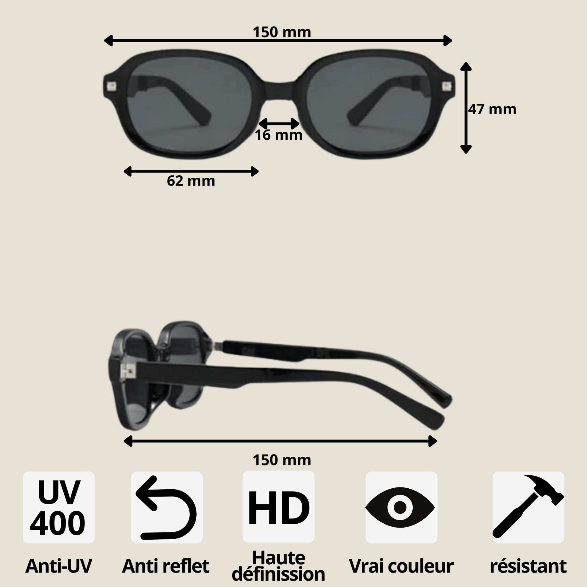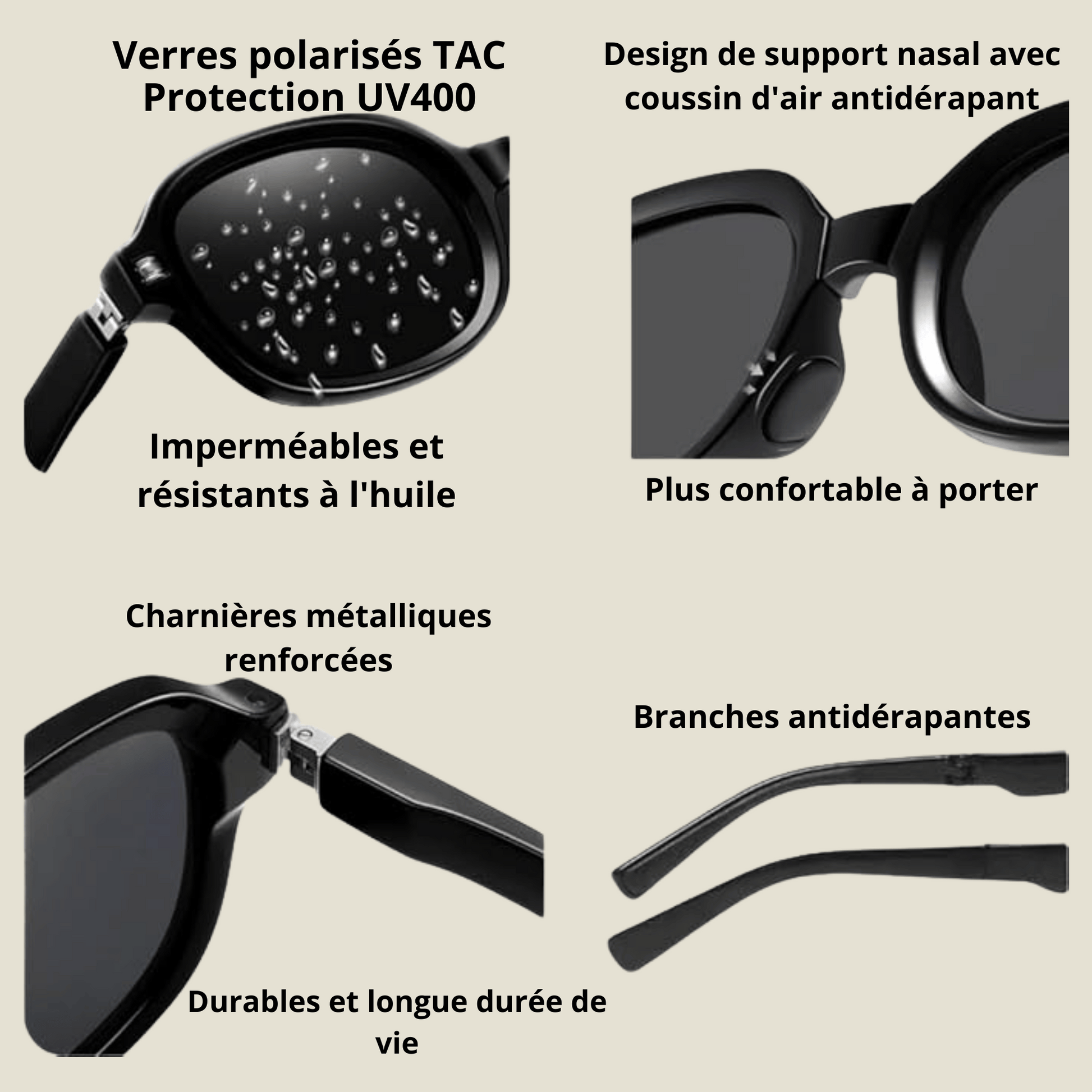 🕶️ Verres polarisés UV400 – Profitez d’une vision nette et protégée contre les rayons nocifs du soleil.
